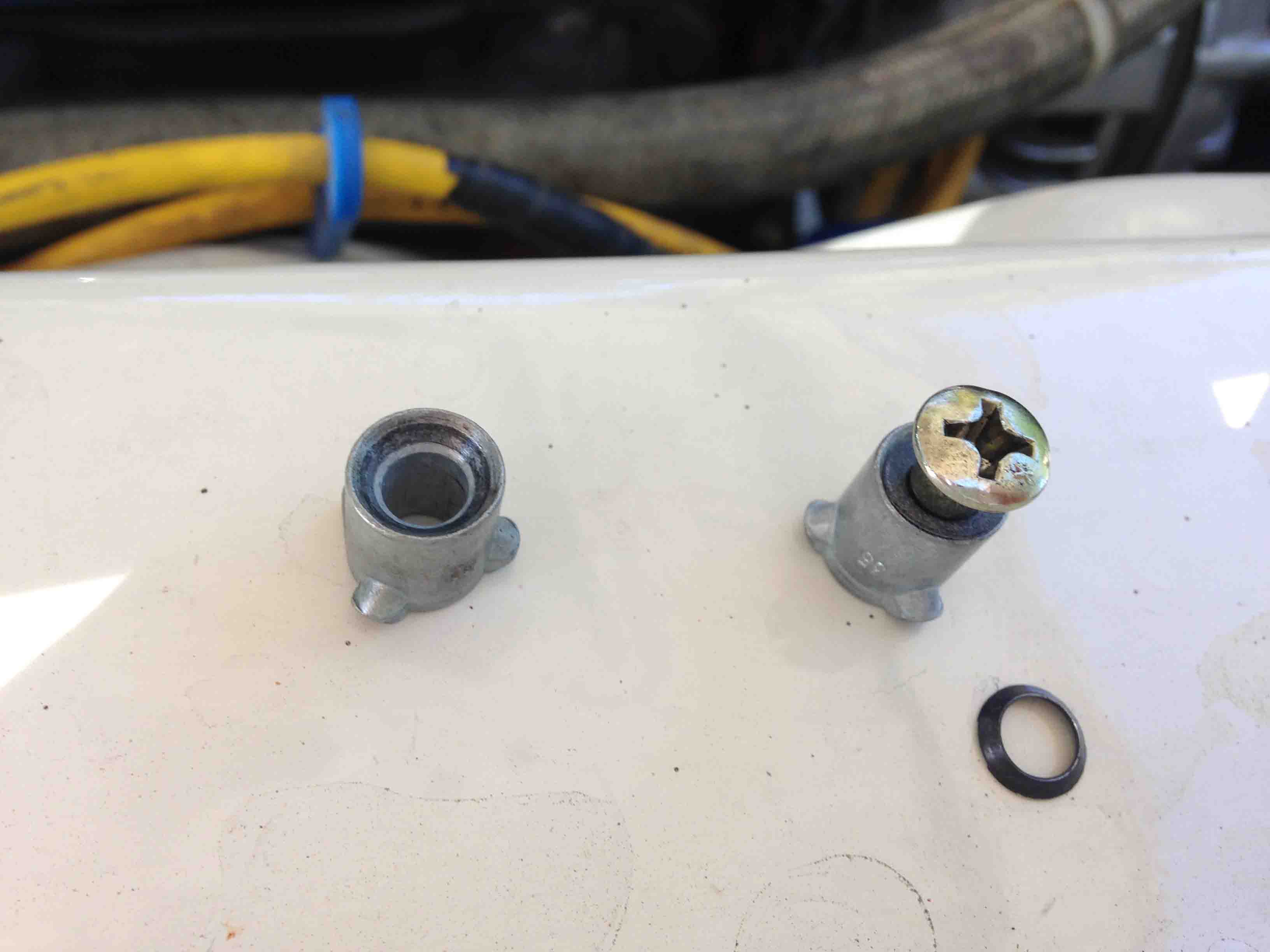 Here’s a top view. and the new top washer/seal that I chose to replace since the is little or no risk in replacing that one. I’ve read somewhere on the Net that you don’t need to go larger than a #35 on the street. I’ve also heard from Julius Steuer that he usually goes two sizes up. Which would be a #35.