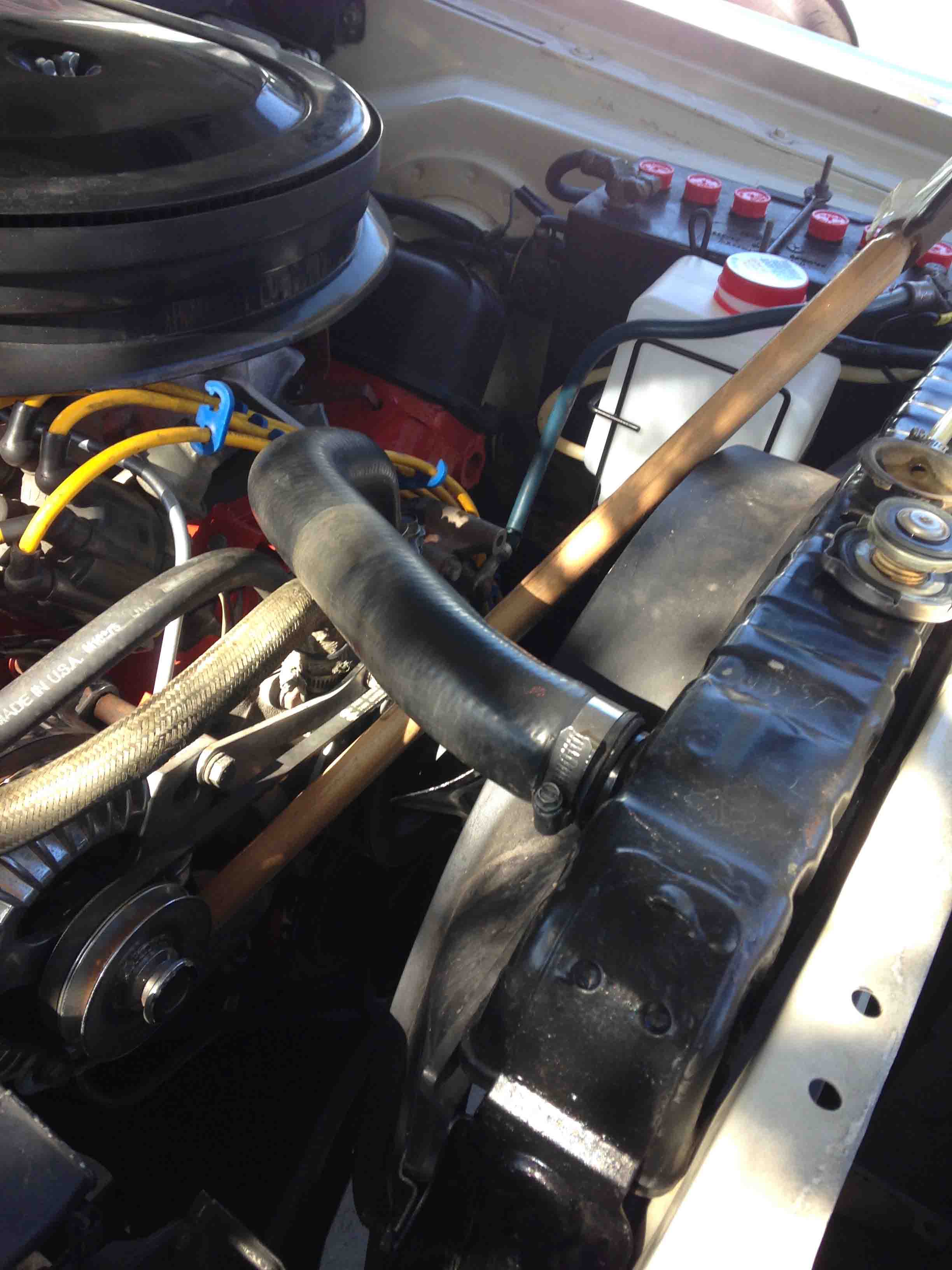 I’m still running the old coolant out of the engine as I have drained the coolant several times and have almost reaching the point where I’m running pure distilled water. I’ll write the last “Simmering of 440 Overheating Issues” later, but you may be interested to know the engine runs cooler with a thermostat. The reason is (based on my observations of the drained fluid) the thermostat allows the fluid to churn more effectively throughout the cooling passages in the engine. In other words, without the thermostat, coolant coming from the radiator tends to go directly back out the upper hose rather than being forced rearward into the engine to exchange more thoroughly with heated fluid. I’ll share my observation why I think this later.