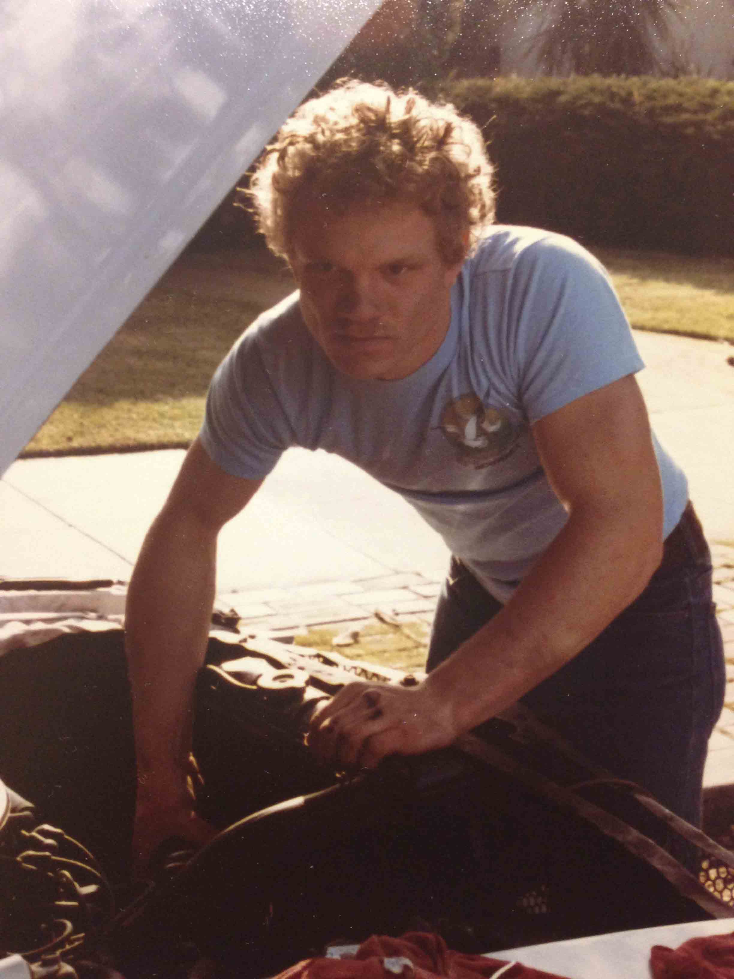 This early 1980’s photo  of Scott Douglas, the Ford Expert, part of a triad friendship along with Rick Elliot, the Chevy Expert in the early days at Palo Alto High School. When I had my Mustang, Scott was always ready to help me with whatever I needed.